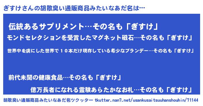 | ヘコむあだ名 | 『ぎすっちょ』『ぎすにゅー』 |