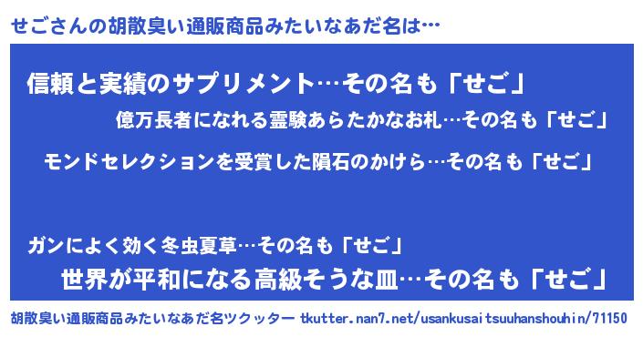 | ヒーロー風カッコイイあだ名 | 『慈愛の使者せご』『暗黒騎士セゴ』 |