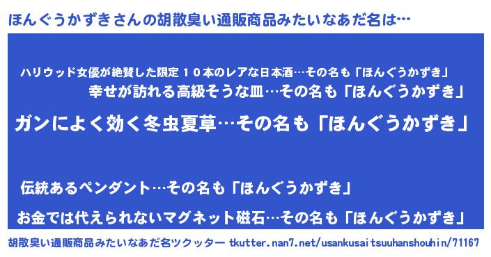 | 意味不明あだ名 | 『自称ほんぐうかずき』 |