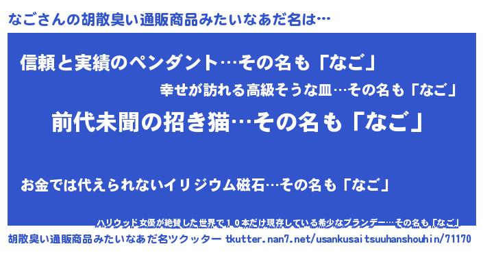 | ヘコむあだ名 | 『なご(小並感)』『なごっちょ』 |