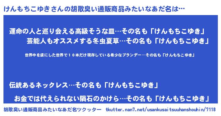 | 意味不明あだ名 | 『住所不定無職けんもちこゆき(79歳)』 |