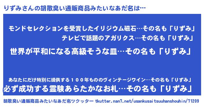 | 肩書あだ名 | 『りずみ国家主席』『りずみ少尉』 |