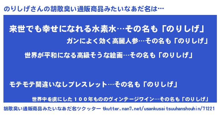 | ヘコむあだ名 | 『なまこ酢』『のりしげ(笑)』 |
