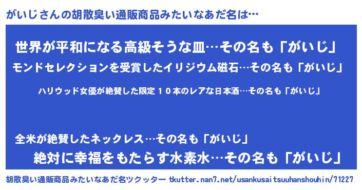 | 男性向けラノベタイトル風あだ名 | 『緋弾のガイジ』『ガイジスレイヤー』 |