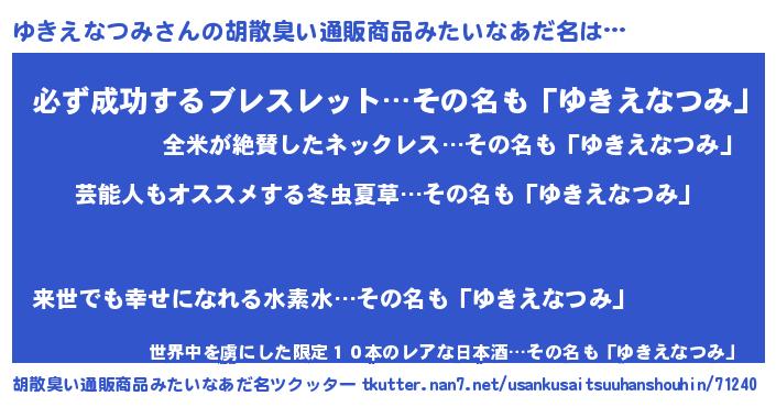 | 意味不明あだ名 | 『自称ゆきえなつみ』 |