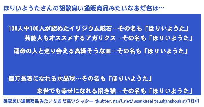 | 肩書あだ名 | 『ほりいようた国家主席』 |