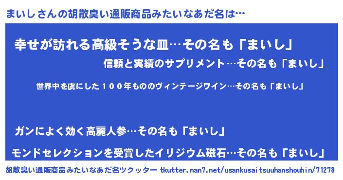 | ヘコむあだ名 | 『なまこ酢』『まいを』『まいにゅー』 |