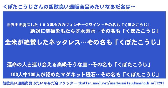 | 意味不明あだ名 | 『とにかく怪しいくぼたこうじ』 |