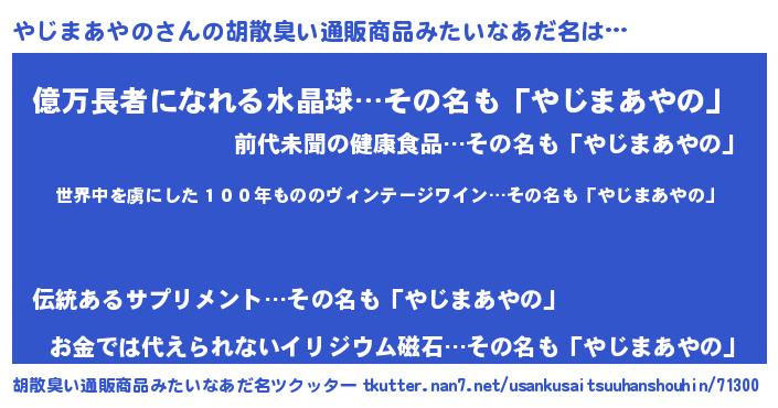 | 恥ずかしいあだ名 | 『プリティーやじまあやの』『やじちん』 |