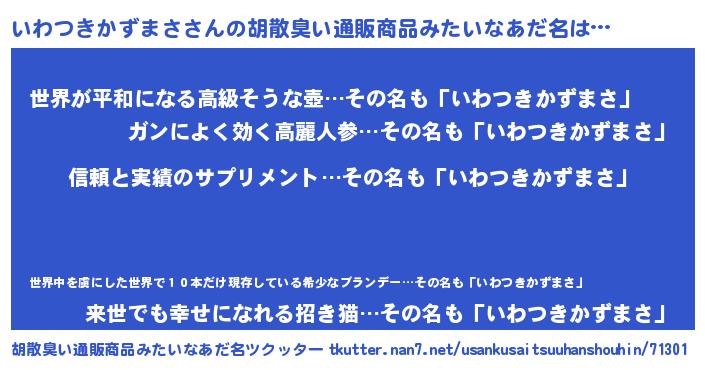 いわつきかずまささんの胡散臭い通販商品みたいなあだ名をツクッター!