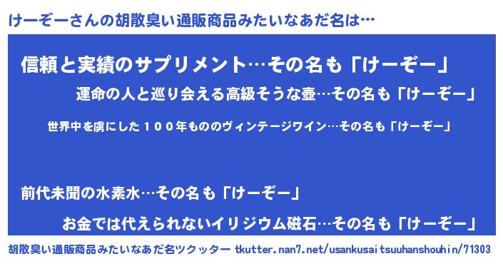 | 意味不明あだ名 | 『住所不定無職けーぞー(1歳)』 |