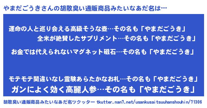| 意味不明あだ名 | 『眠気覚ましガムやまだごうき味』 |