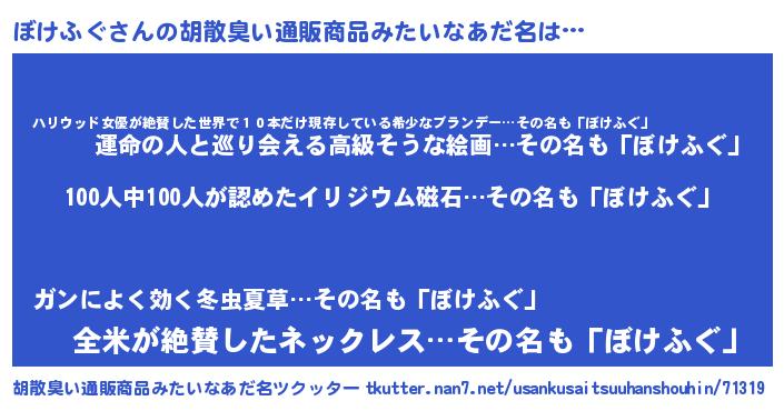 | ヒーロー風カッコイイあだ名 | 『友情の使者ぼけふぐ』『仮面ボケダー』 |