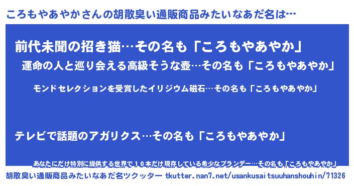 | 伝説のあだ名 | 『救世主となる占い師ころもやあやか』 |