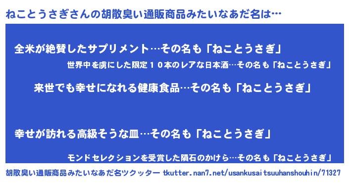 | 意味不明あだ名 | 『永久保存ねことうさぎ』 |
