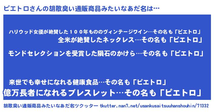 | ヒーロー風カッコイイあだ名 | 『天空の使者ピエトロ』『仮面ピエダー』 |