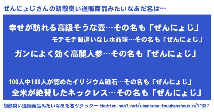 | 肩書あだ名 | 『ぜんにょじ閣下』『ぜんにょじ大統領』 |