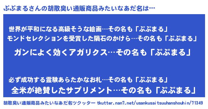 | 女子向けラノベタイトル風あだ名 | 『ぷぷまるなんてお断りですっ。』 |