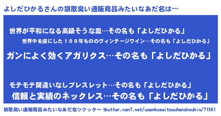 | 意味不明あだ名 | 『自称よしだひかる』 |