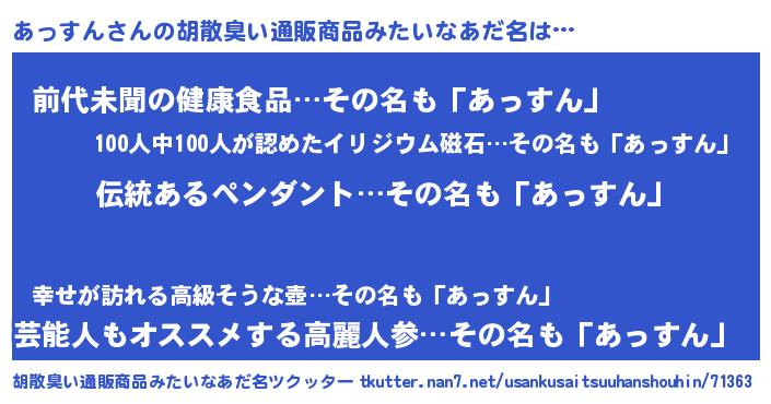 | ヘコむあだ名 | 『あっっちょ』『あっすん(爆)』 |