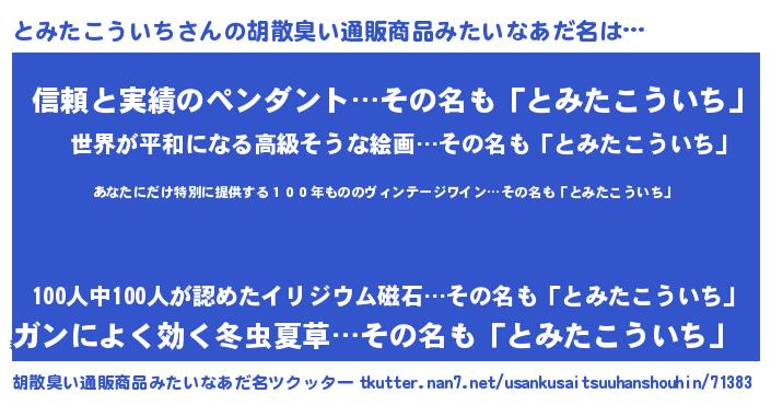 | 意味不明あだ名 | 『住所不定無職とみたこういち(3歳)』 |