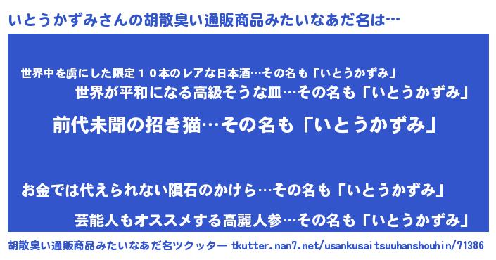 | 意味不明あだ名 | 『永久保存いとうかずみ』 |