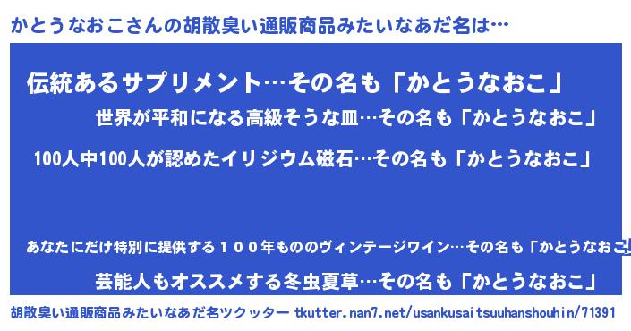 | ヒーロー風カッコイイあだ名 | 『正義の使者かとうなおこ』 |