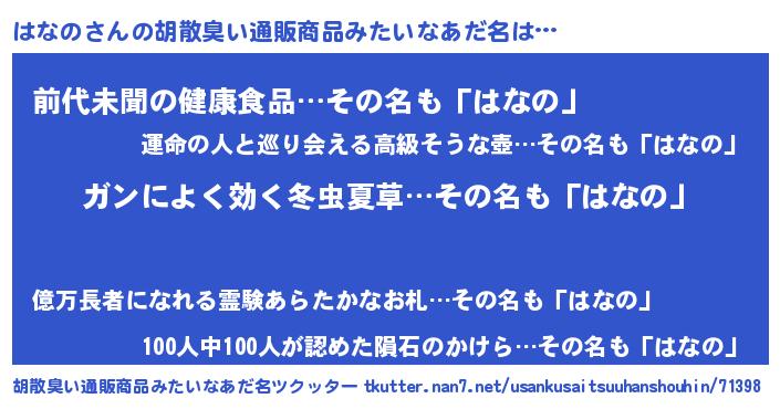 | ヘコむあだ名 | 『はなの(震え声)』『酢こんぶ』 |