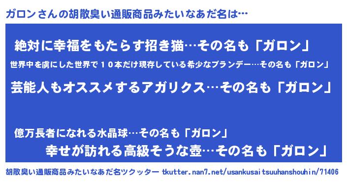 | ヘコむあだ名 | 『ガロン(爆)』『牛乳』『ガロにー』 |