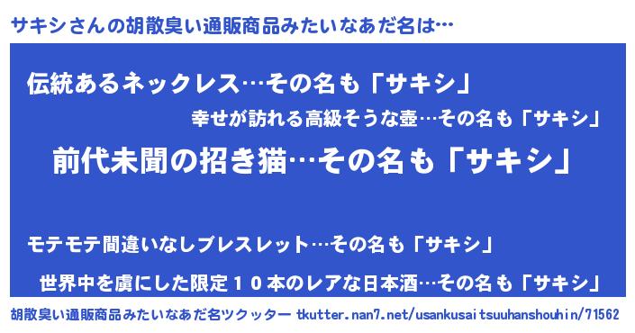 | ヒーロー風カッコイイあだ名 | 『ネオサキシ』『黄金騎士サキ』 |