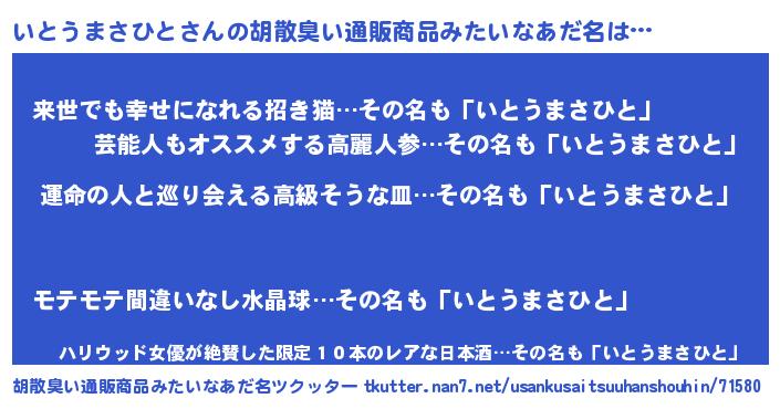 | ヘコむあだ名 | 『酢こんぶ』『いとうまさひと(笑)』 |