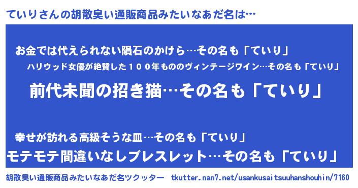 | 意味不明あだ名 | 『永久保存ていり』『ペロリンていり』 |