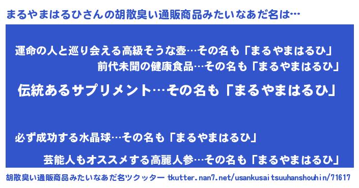 まるやまはるひさんの胡散臭い通販商品みたいなあだ名をツクッター!