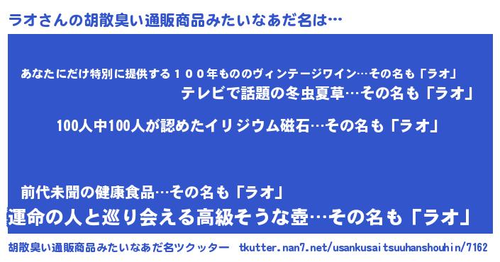 | 意味不明あだ名 | 『眠気覚ましガムラオ味』『自称ラオ』 |