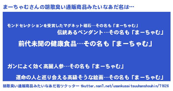 まーちゃむさんの胡散臭い通販商品みたいなあだ名をツクッター!