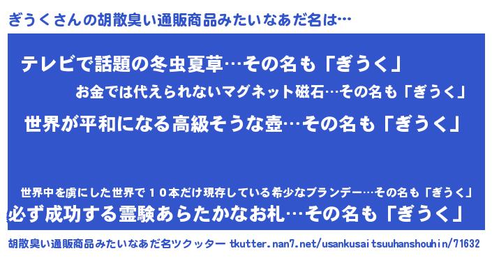| 意味不明あだ名 | 『ぎうくフォーエバー』『自称ぎうく』 |