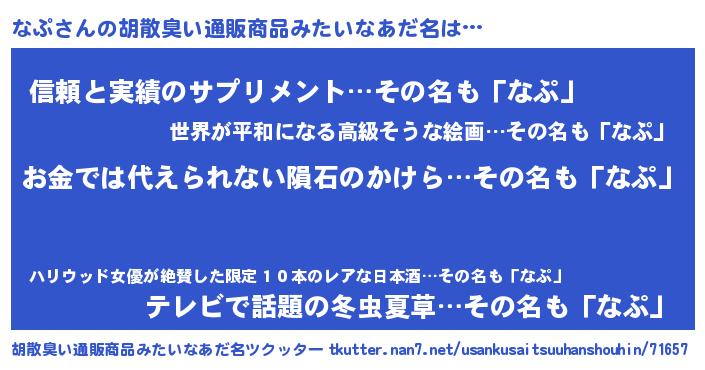 | 意味不明あだ名 | 『眠気覚ましガムなぷ味』『自称なぷ』 |