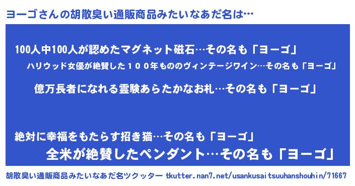 | ヘコむあだ名 | 『ヨーっふぃ~』『ヨー太郎』 |