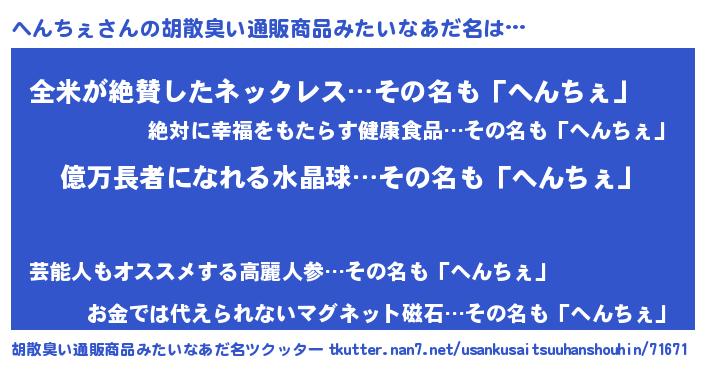 | ヘコむあだ名 | 『へんにゅー』『へんっぺ』『つくし』 |