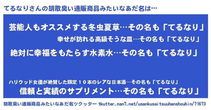 | 意味不明あだ名 | 『永久保存てるなり』『自称てるなり』 |