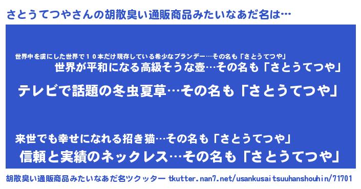 | 意味不明あだ名 | 『自称さとうてつや』 |