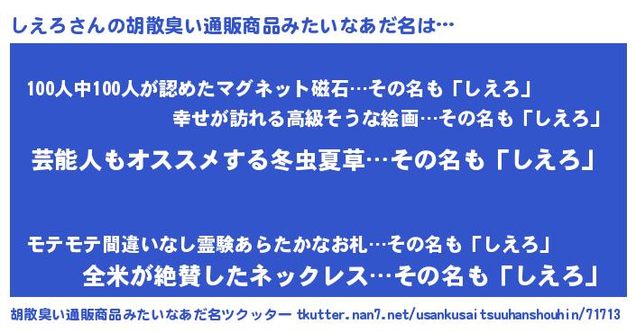| 男性向けラノベタイトル風あだ名 | 『Re:しえろから始める異世界生活』 |