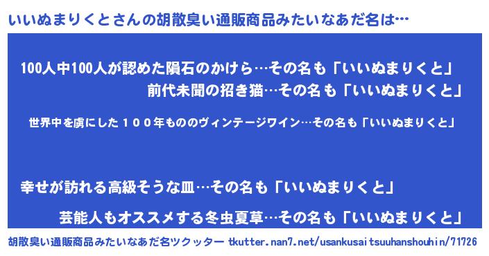 | ヘコむあだ名 | 『いいぬまりくと(笑)』『つくし』 |