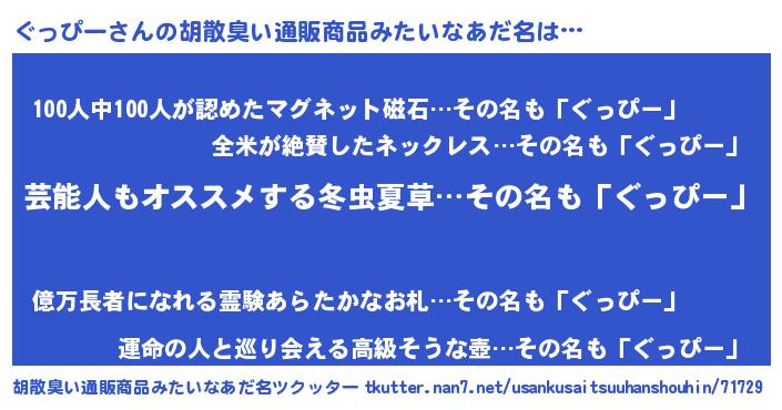 | 肩書あだ名 | 『ぐっぴー総統』『ぐっぴー助教授』 |