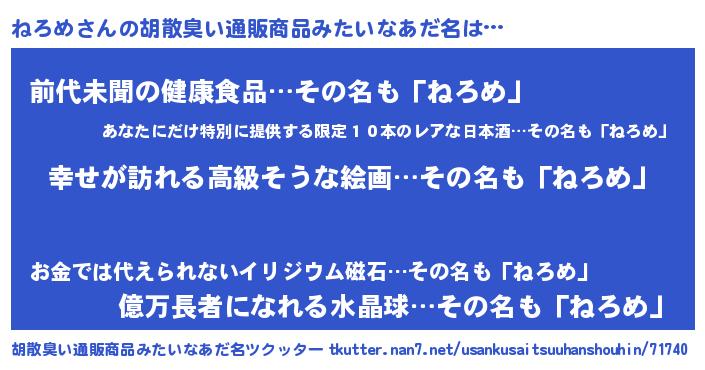 | 意味不明あだ名 | 『ねろめフォーエバー』『永久保存ねろめ』 |