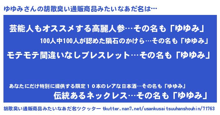 | ヘコむあだ名 | 『ゆゆにー』『ゆゆ太郎』『つくし』 |