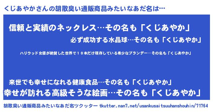 | 意味不明あだ名 | 『住所不定無職くじあやか(93歳)』 |