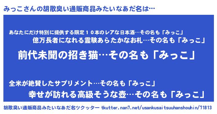 | 意味不明あだ名 | 『永久保存みっこ』『しいたけ科みっこ属』 |