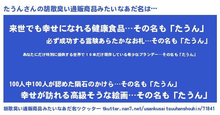 | 意味不明あだ名 | 『住所不定無職たうん(79歳)』 |