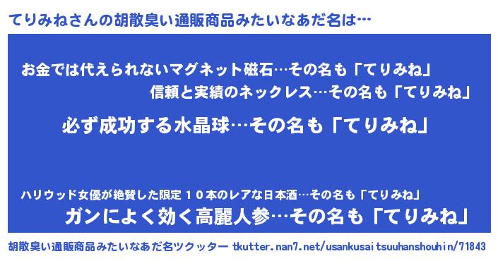 | 意味不明あだ名 | 『ペロリンてりみね』『自称てりみね』 |